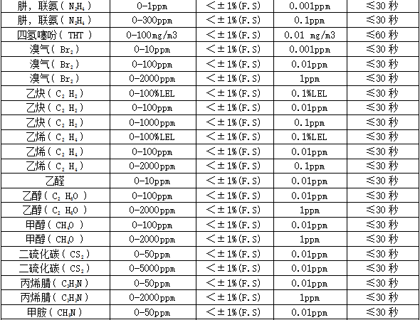 響應(yīng)時(shí)間:T90≤20秒恢復(fù)時(shí)間:≤30秒