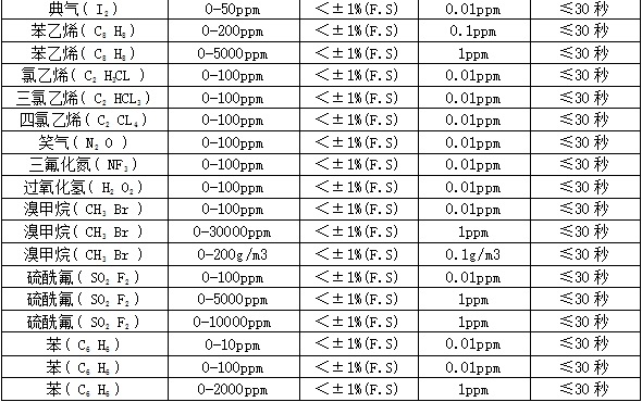 檢測(cè)范圍:0-1000、2000、5000ppm 一氯二氟甲烷 CHClF2